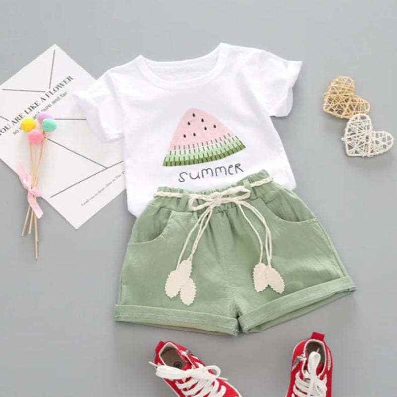 Material: Constructed from cotton, this outfit is breathable and soft, ensuring comfort during warm weather.