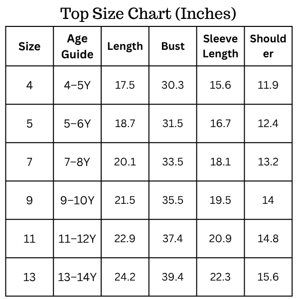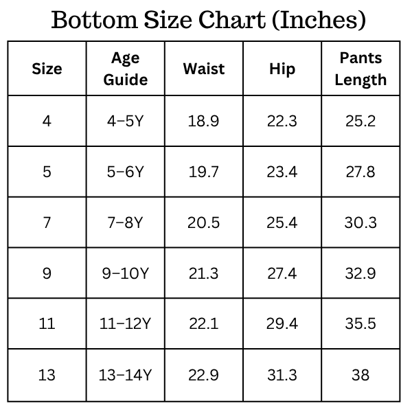 Size Chart (inches):