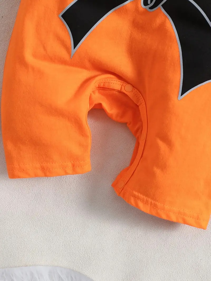 Featuring a bright orange hue with a cheerful cartoon print and faux belt design, this Jumpsuit delivers a stylish, gaze-catching look suitable for casual outings or photo sessions. The infant summer jumpsuit design includes locked snap closures that make diaper changes quick and hassle-free.