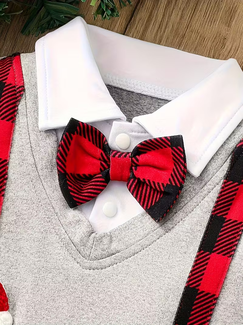 Perfect for family photos, Christmas gatherings, or festive outings, the Baby Christmas Plaid Set creates a charming appearance for memorable moments.