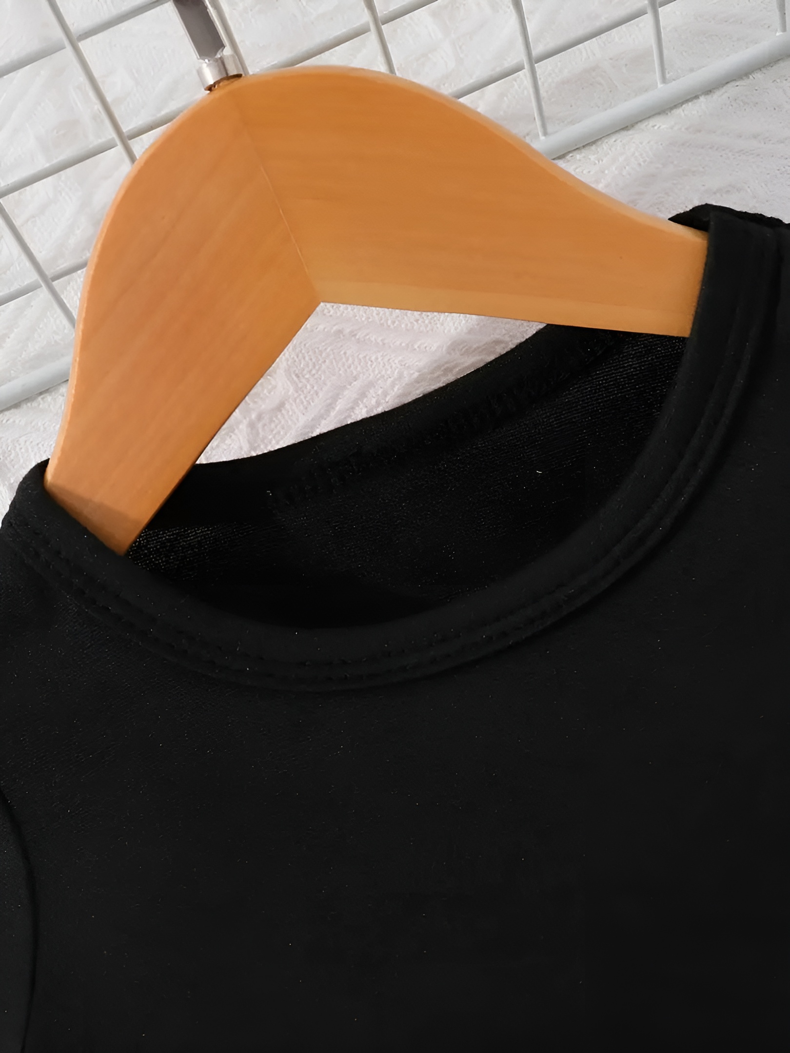 Crafted from a soft polyester spandex blend, it offers slight stretch and a smooth feel, keeping your child comfortable throughout the day. The lightweight design makes it ideal for spring and summer, while the pullover and elastic waist construction provide convenience for everyday wear.