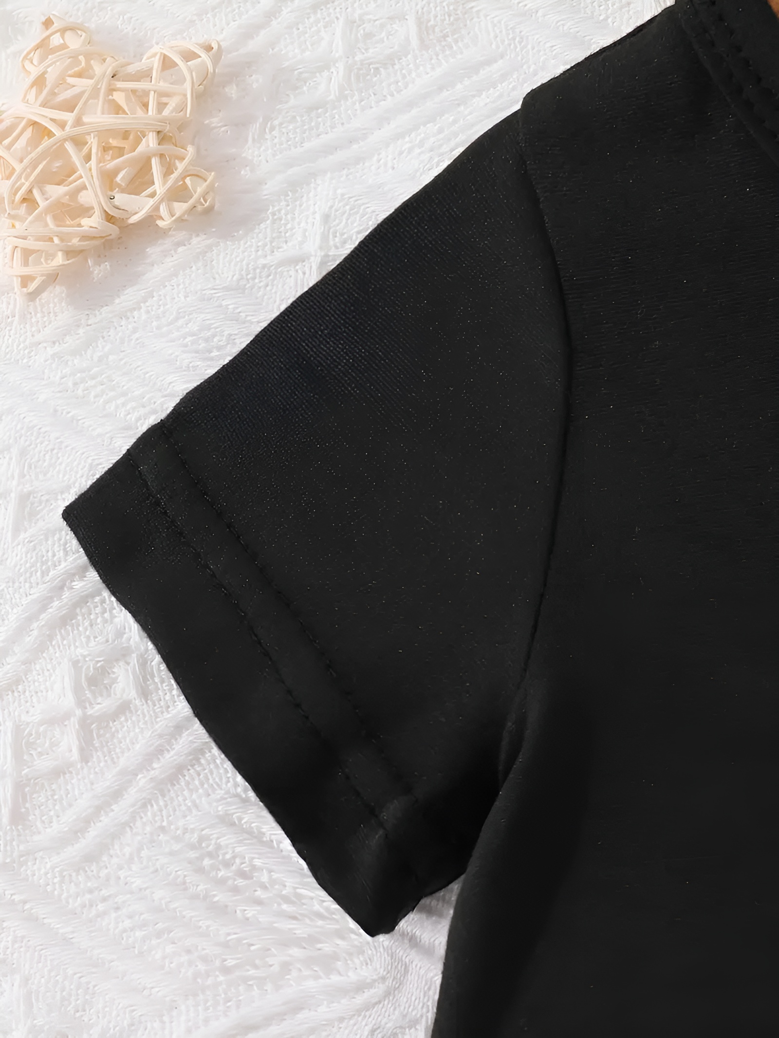 Whether for home use, outdoor play, or family outings, this two-piece clothing set offers a chic yet practical option. Its elegant bow detail, coordinated color palette, and easy-care fabric make it a wardrobe fundamental for any season.