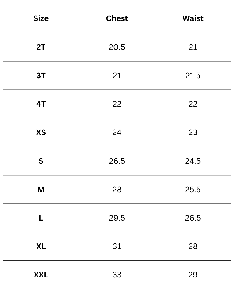 Size Chart (Inches):