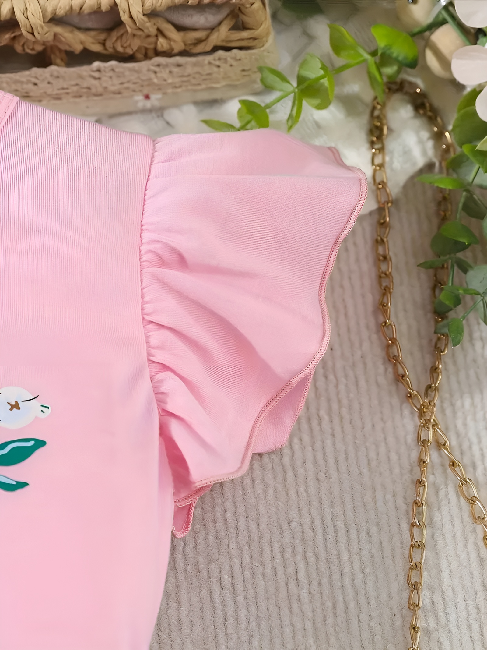 - Butterfly & Floral Print: The beautiful pink butterfly and floral design gives the outfit a fresh look, perfect for summer days.