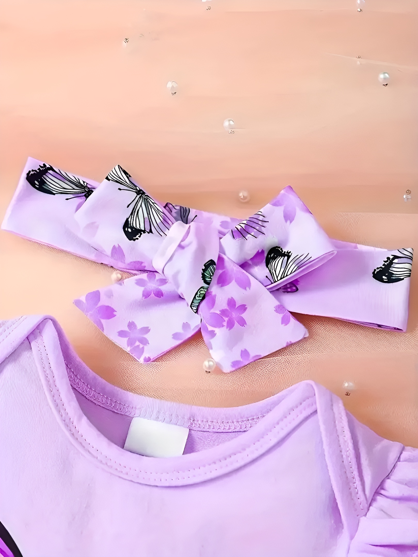 Why Choose This Butterfly Printed Bodysuit With Matching Shorts And Headband Three Piece Set
