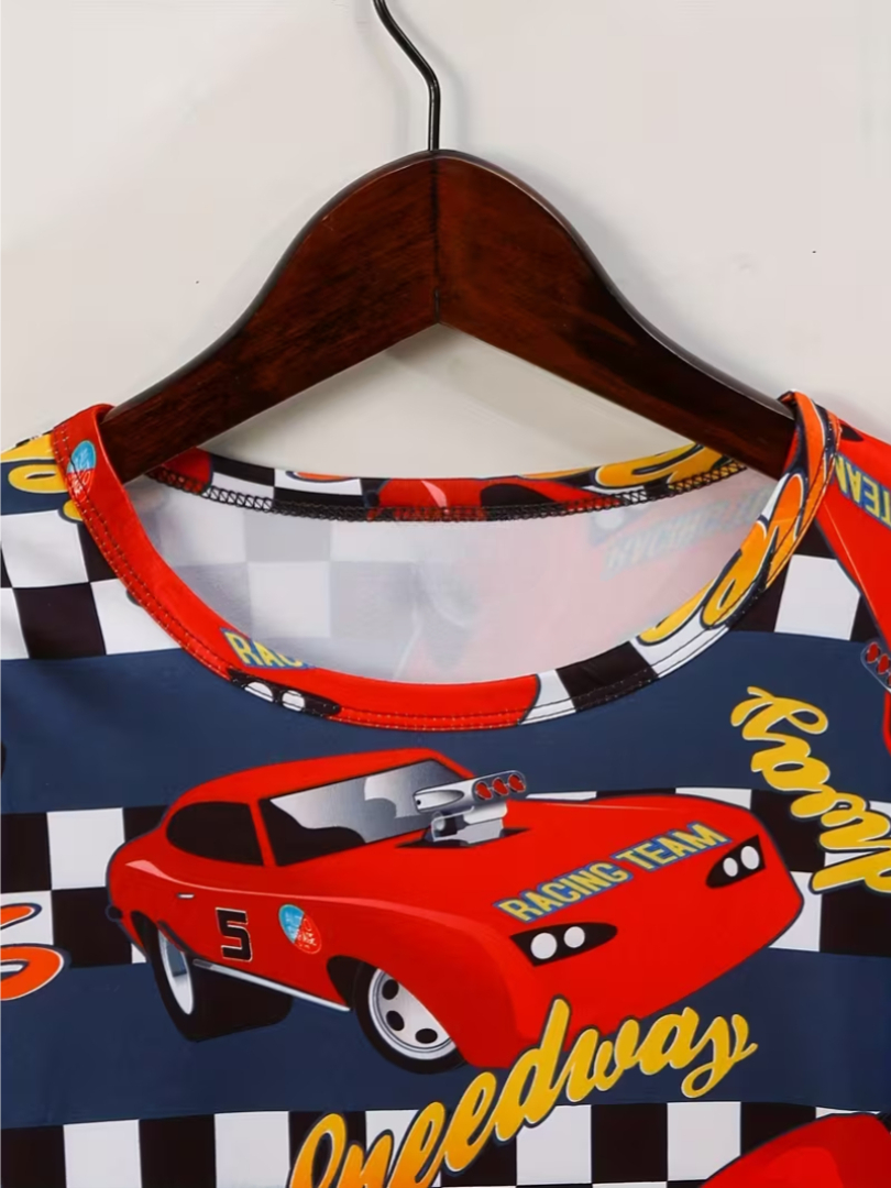 If you're looking for a gift that will excite, this pajama set makes the perfect choice. Its dynamic car design is sure to capture the attention of any young racing enthusiast. Whether it’s for a birthday, holiday, or just a thoughtful surprise, this set will make sleep fun and enjoyable.