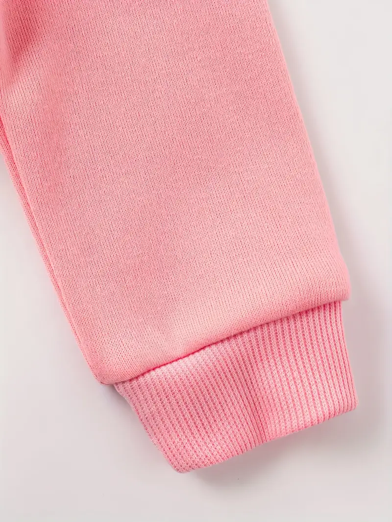The matching sweatpants complete the outfit, making it ideal for outdoor activities, casual outings, or simply wearing at home. Made with soft and airy polyester fabric, this Cartoon Print Hooded long-sleeve sweatshirt and Sweatpants Set ensures comfort throughout the day while adding a fun look to your baby girl's wardrobe.
