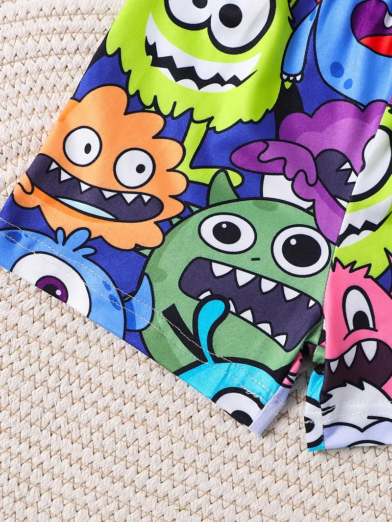The Cartoon Print Short Sleeve Top and Random Print Shorts 2 Piece Set for Boys combines creativity, comfort, and functionality in one vibrant outfit. Featuring a cartoon-themed short-sleeve top and colorfully printed shorts, it provides both style and playfulness for everyday wear.