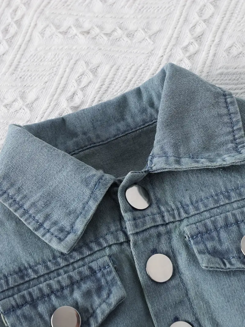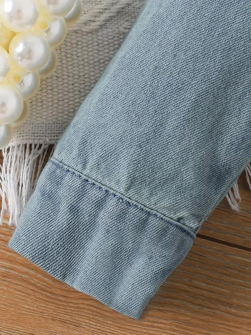 Whether for outings, gatherings, or travel, this short denim jacket outfit keeps your child comfortably dressed and stylish all season long. A charming blend of charm and everyday practicality, it’s a fashionable staple for any young girl’s collection.