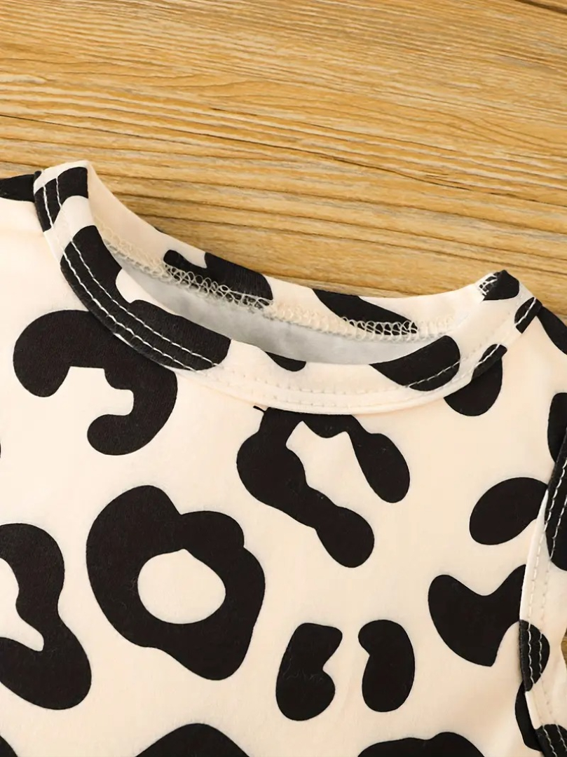 - Two-Piece Coordinated Set: Includes a cartoon print vest dress and short denim jacket.