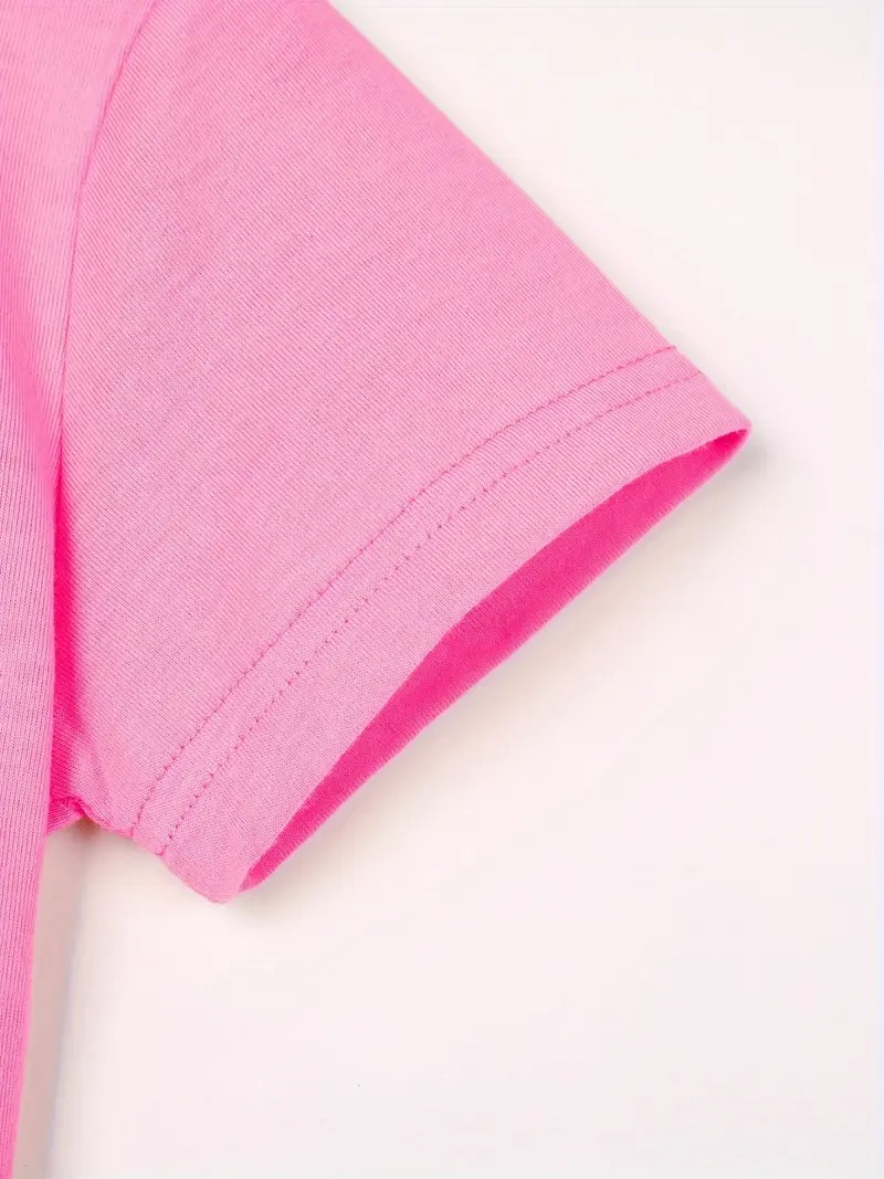 The Colorful Lettering Graphic Print Short Sleeve T Shirt is a vibrant and addition to any young girl’s wardrobe. This gaze-catching shirt celebrates a special family bond with its lively slogan and colorful design. Crafted for comfort and style, it is perfect for sunny days, playdates, parties, or any casual outing. The bright pink fabric paired with whimsical lettering and floral accents creates an exciting look that kids will enjoy wearing. Made from soft polyester with a crew collar and short sleeves, this tee offers a gentle stretch allowing freedom of movement. Its standout message brings fun and personality while providing a cozy fit that suits active kids.