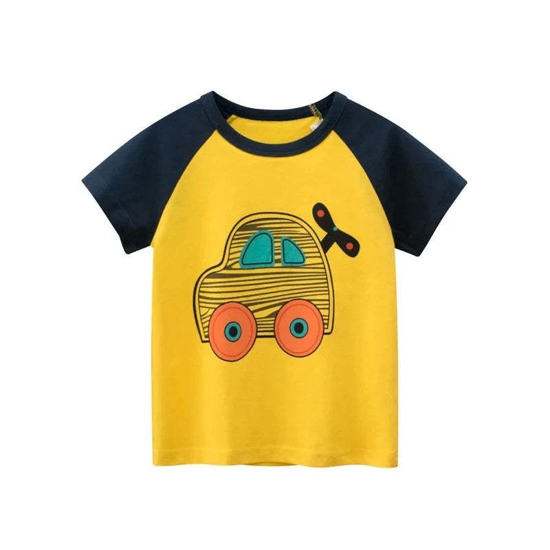 Gear up your little one's wardrobe with the Construction Crew Summer Print T Shirt. This piece combines a fun cartoon print with comfortable wearability, making it an ideal choice for daily adventures. Crafted for children who adore playful designs, this t-shirt blends fashion with a hint of whimsy.
