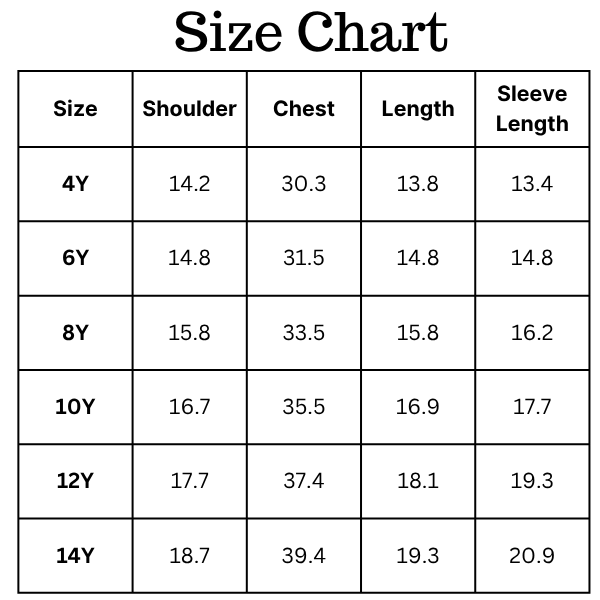 Size Chart (inches):