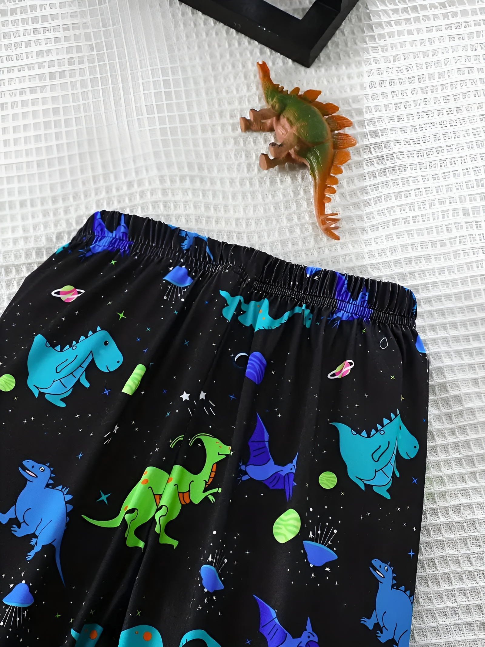 When it comes to kids' sleepwear, comfort and fun are top priorities. This Dinosaur Printed Pajama Set For Boys combines both with designs and cozy fabric. Featuring a variety of random dinosaur-themed tops and pants, this set also boasts a glow-in-the-dark feature. Perfect for casual wear during spring, summer, and autumn, these pajamas are made with soft material, ensuring a comfortable sleep experience.