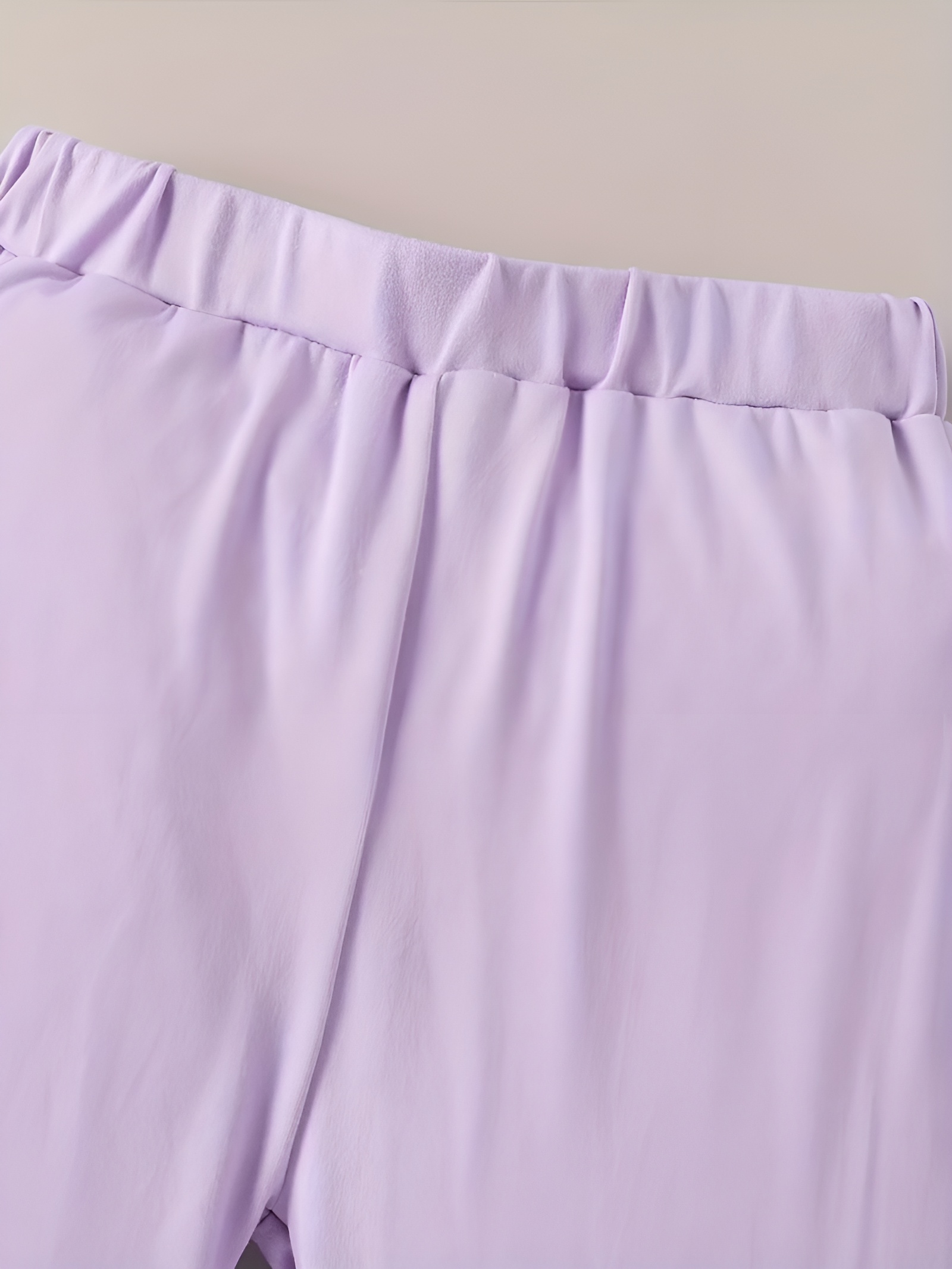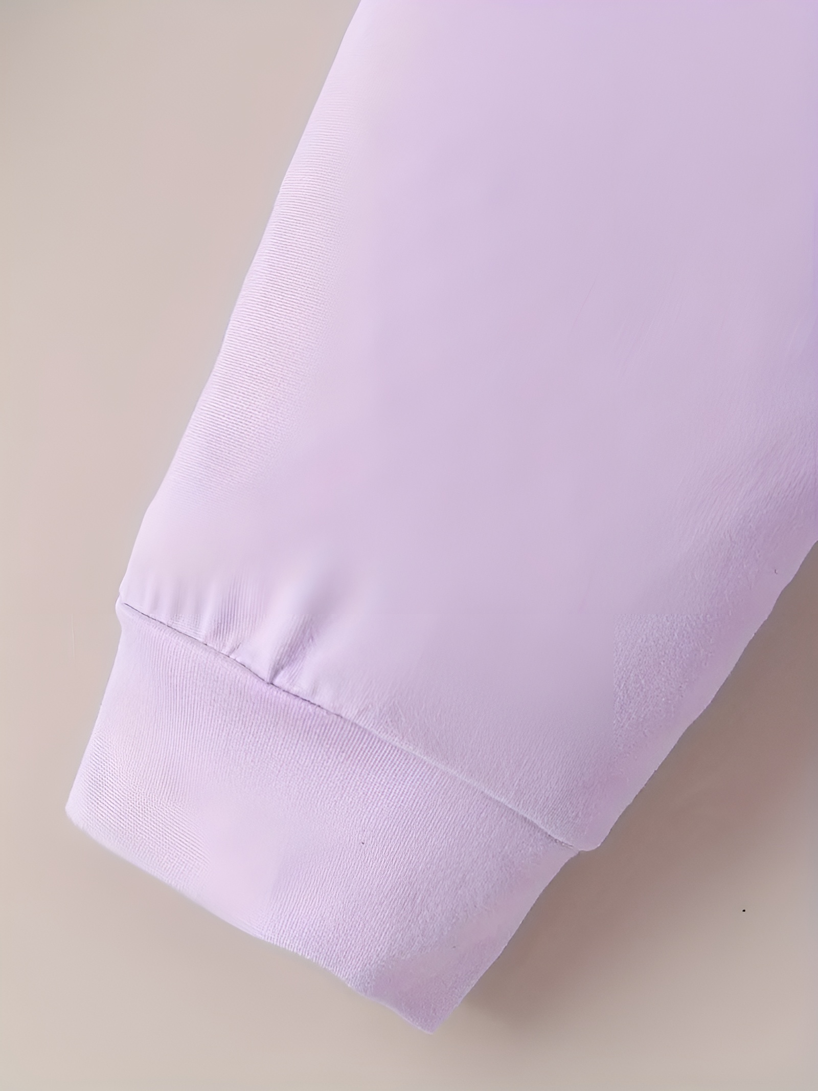 This two-piece clothing set is thoughtfully designed to keep children comfortable while maintaining a fashionable appearance. The soft lavender and white tones, paired with floral accents, make this outfit a standout choice for daily wear.