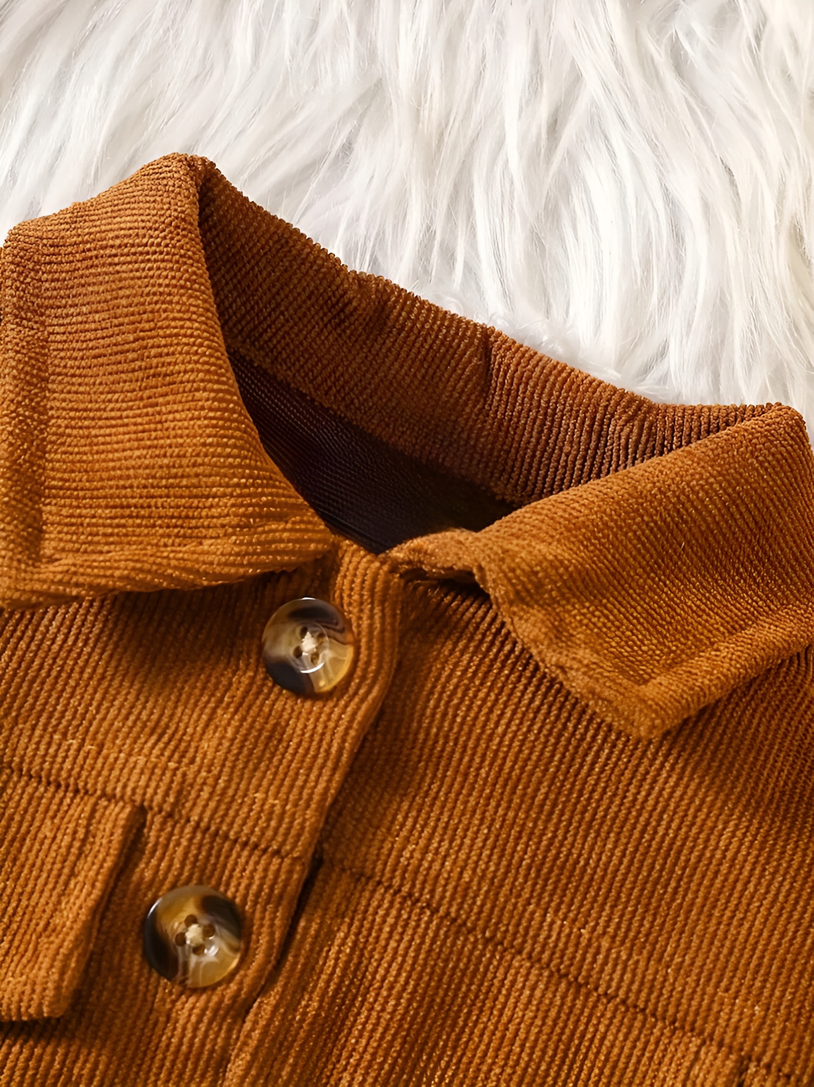 Crafted from a polyester cotton blend, the outfit offers softness, flexibility, and slight stretch for ease of movement. The lightweight design keeps your little one comfortable throughout the day while maintaining a refined appearance. This two-piece clothing set suits various occasions, from family gatherings to casual day events.
