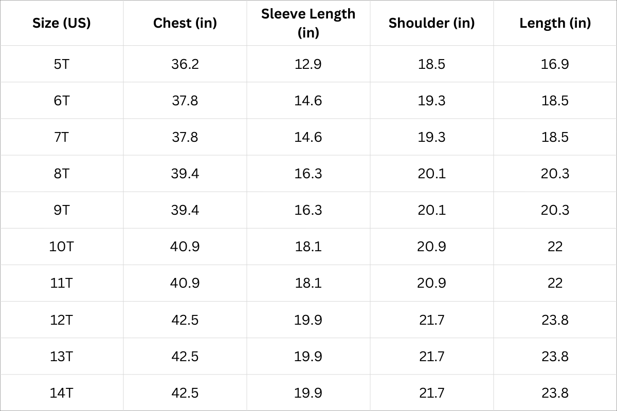 Size Chart (Inches):