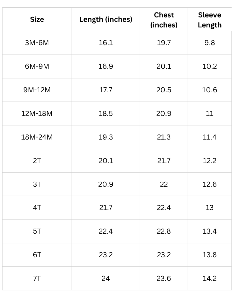 Size Chart (Inches):