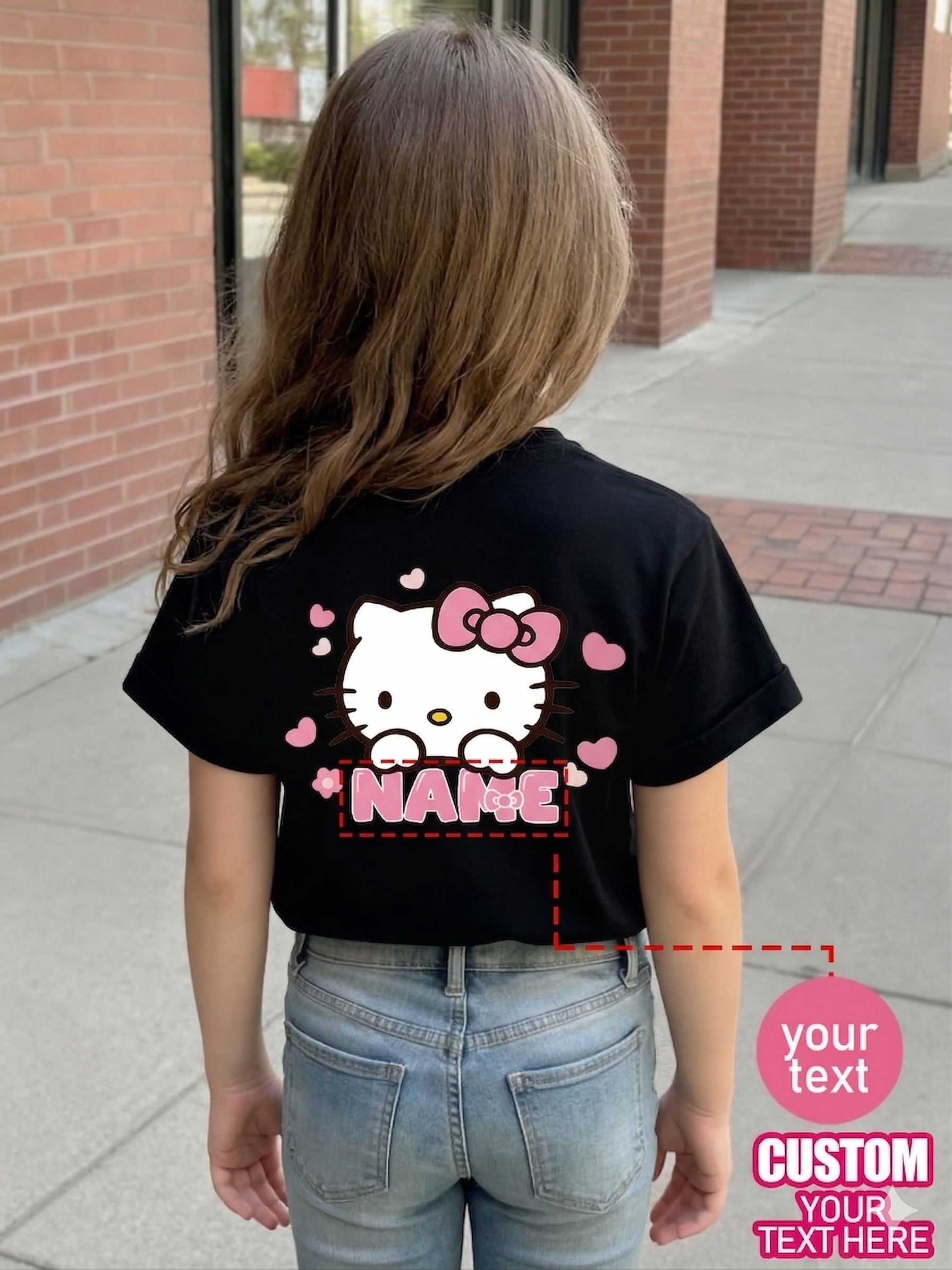 The Hello Kitty Custom Name Printed T Shirt With Short Sleeves For Girls offers a structured casual clothing option designed for daily routines. This garment includes double-sided cartoon graphics and a customizable name feature, making it suitable for individuals seeking a personalized apparel item. The overall construction focuses on lightweight material and consistent fit for regular use across different settings.