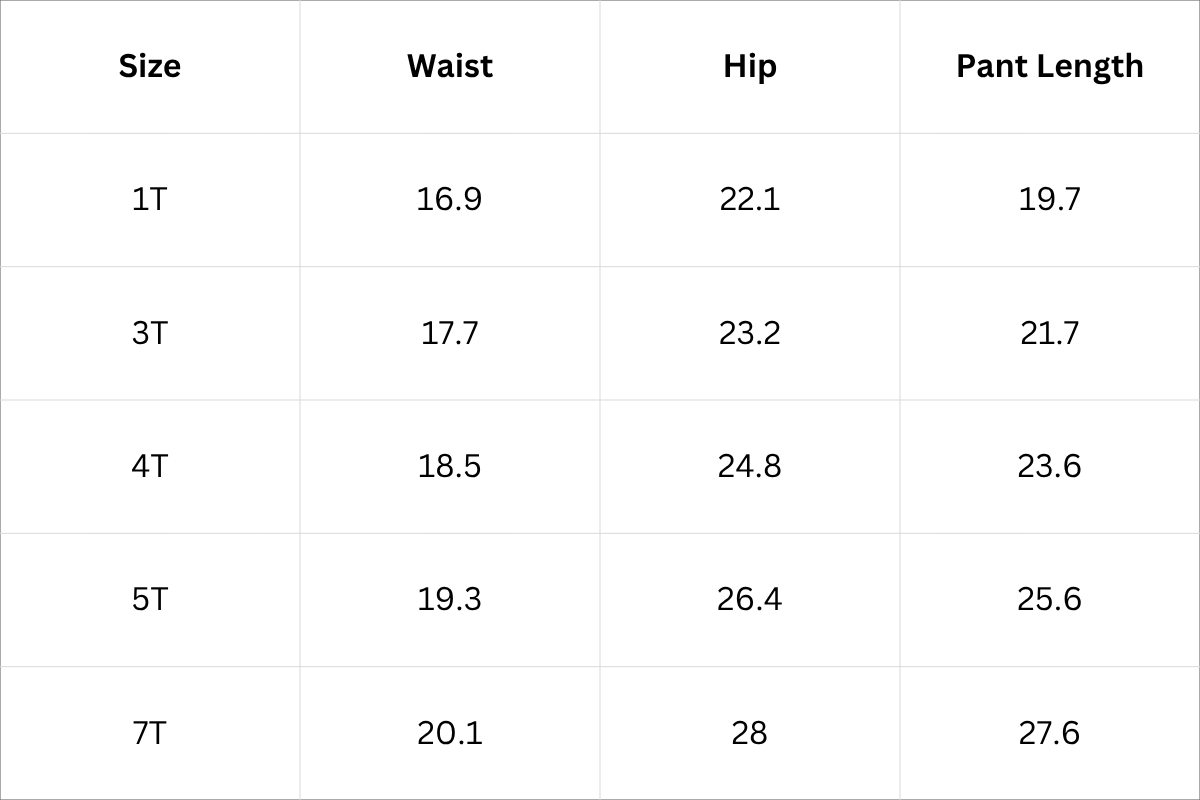 Pant Size Chart (Inches):