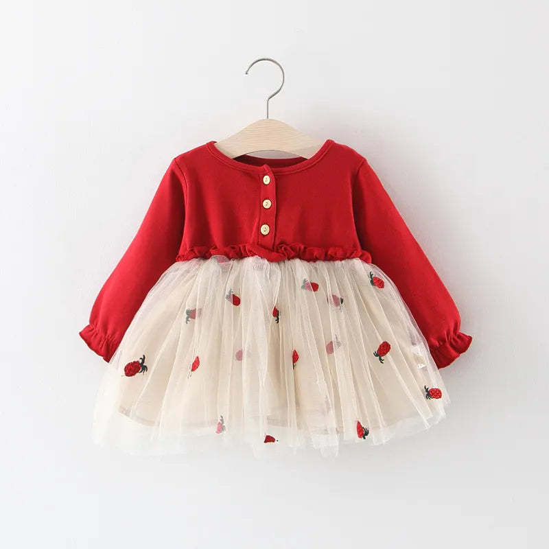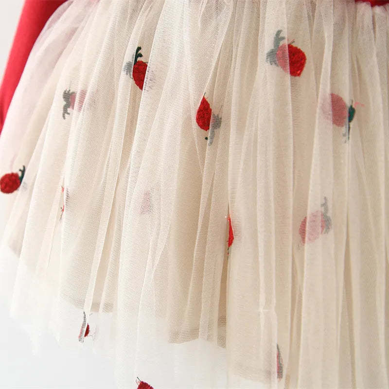 Introduce your little one to the joys of playful dressing with the Ladybug Tulle Dress. Ideal for gatherings or just brightening a regular day, this dress combines a vibrant red top with a whimsical tulle skirt adorned with charming ladybug embellishments.