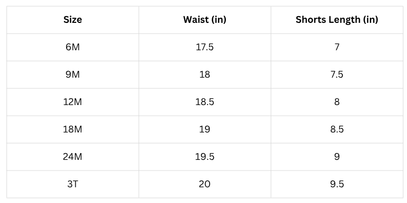 Short Size Chart: