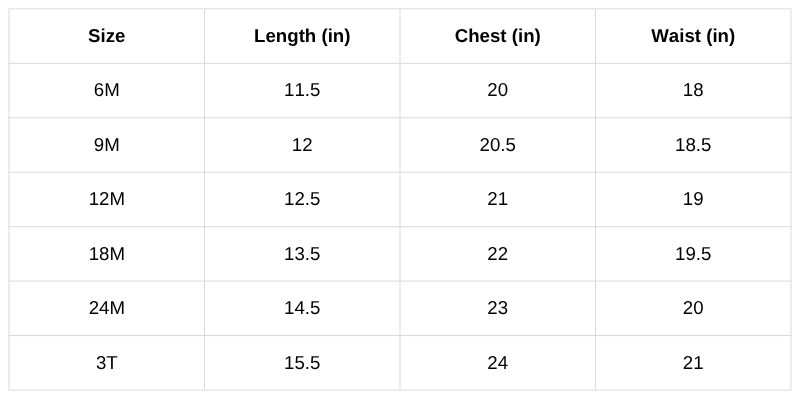 Size Chart (Inches):