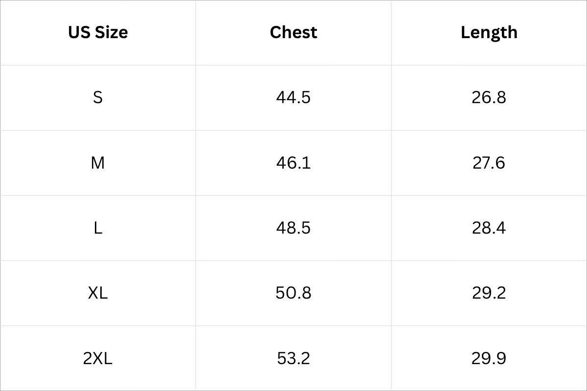Size Chart (Inches):