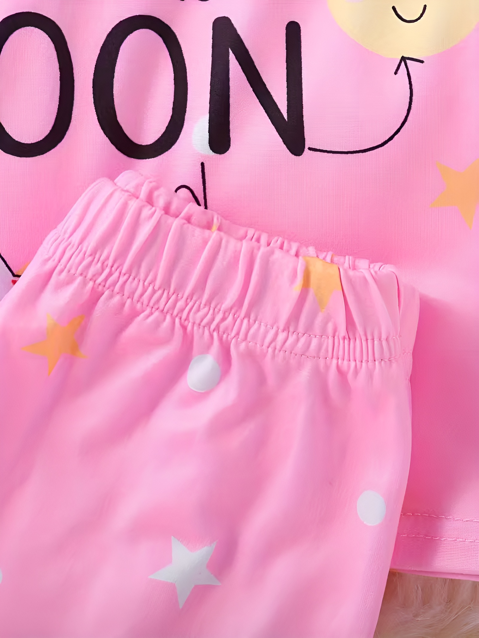 - Moon Rocket Design: The Moon and Rocket Printed Pajama Set for Girls features a vibrant moon and stars print, along with a fun slogan. The space-themed design adds a whimsical look, making it a great choice for imaginative kids who dream of space adventures.