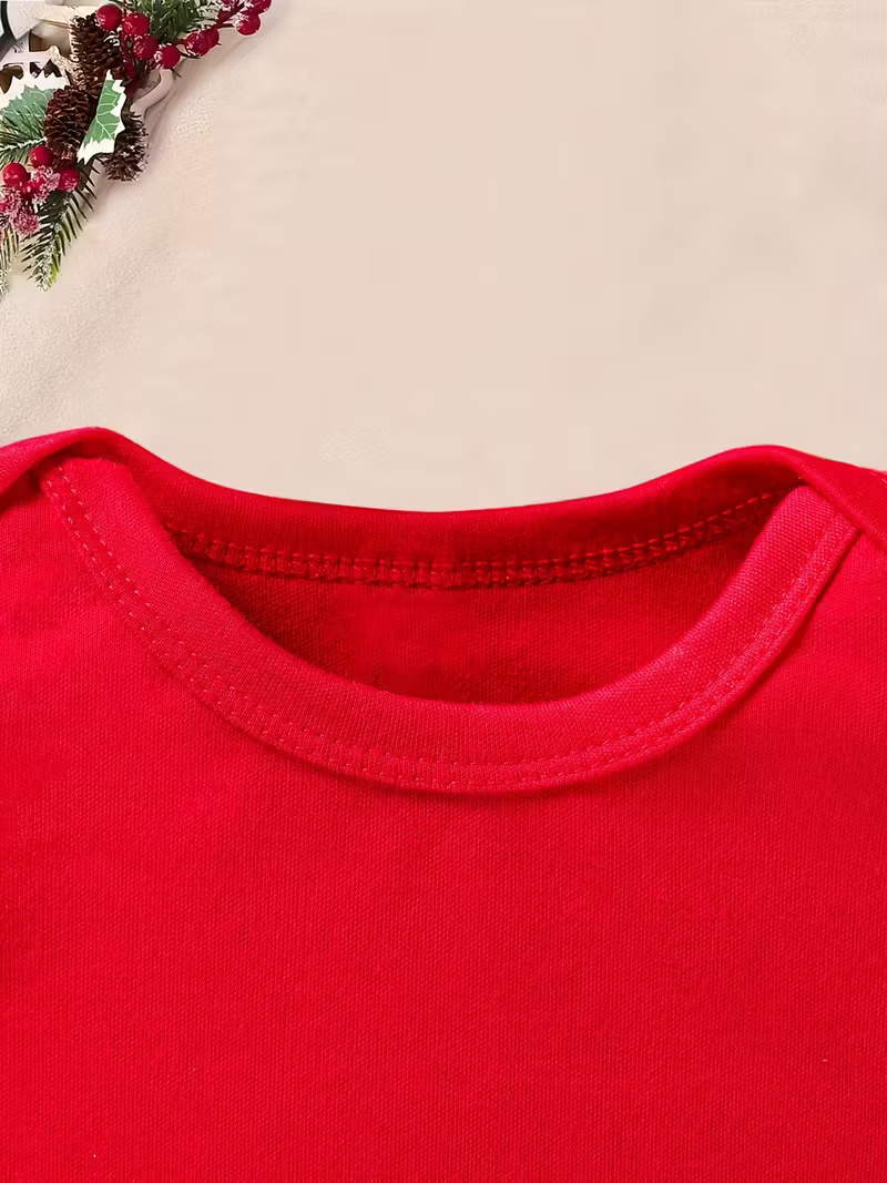 Perfect for holiday photos, outdoor adventures, or everyday wear, this romper adds a joyful touch to any occasion. Its good-quality fabric, thoughtful construction, and cheerful design make it a reliable choice for parents seeking festive apparel for their child.