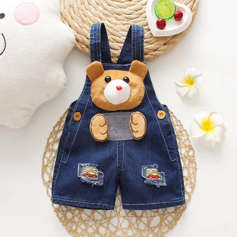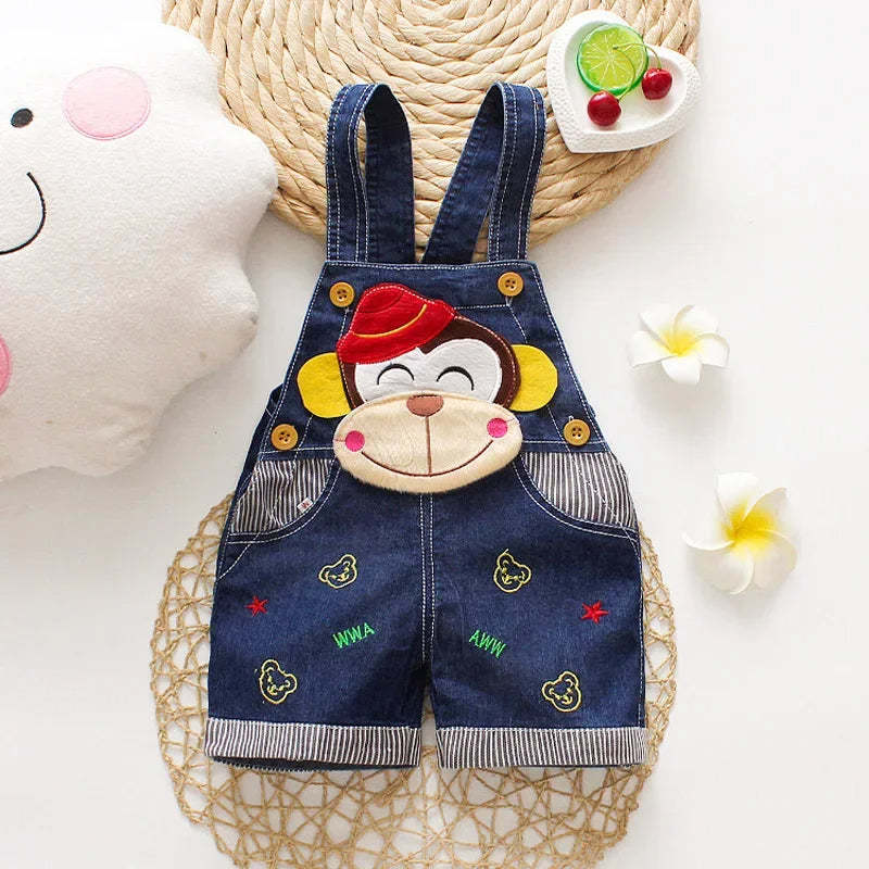 Introduce some playful fun to your child's wardrobe with our Playful Animal Embroidered Denim Jumpsuits for Kids. Designed with a plush cartoon character on denim, these overalls are perfect for active kids who likes creativity. A unique and practical addition to their daily wardrobe, keeping them stylish and comfortable for any adventure.