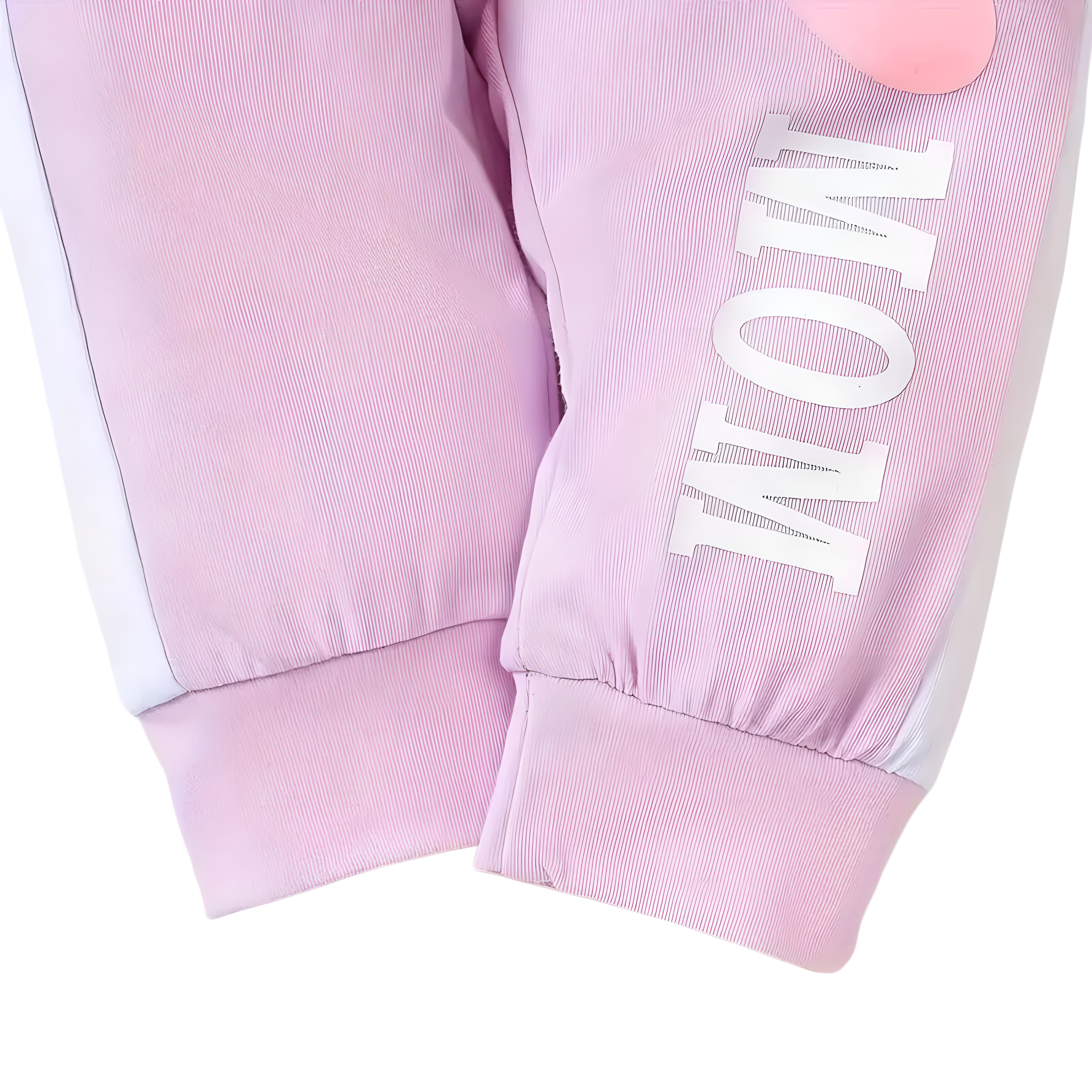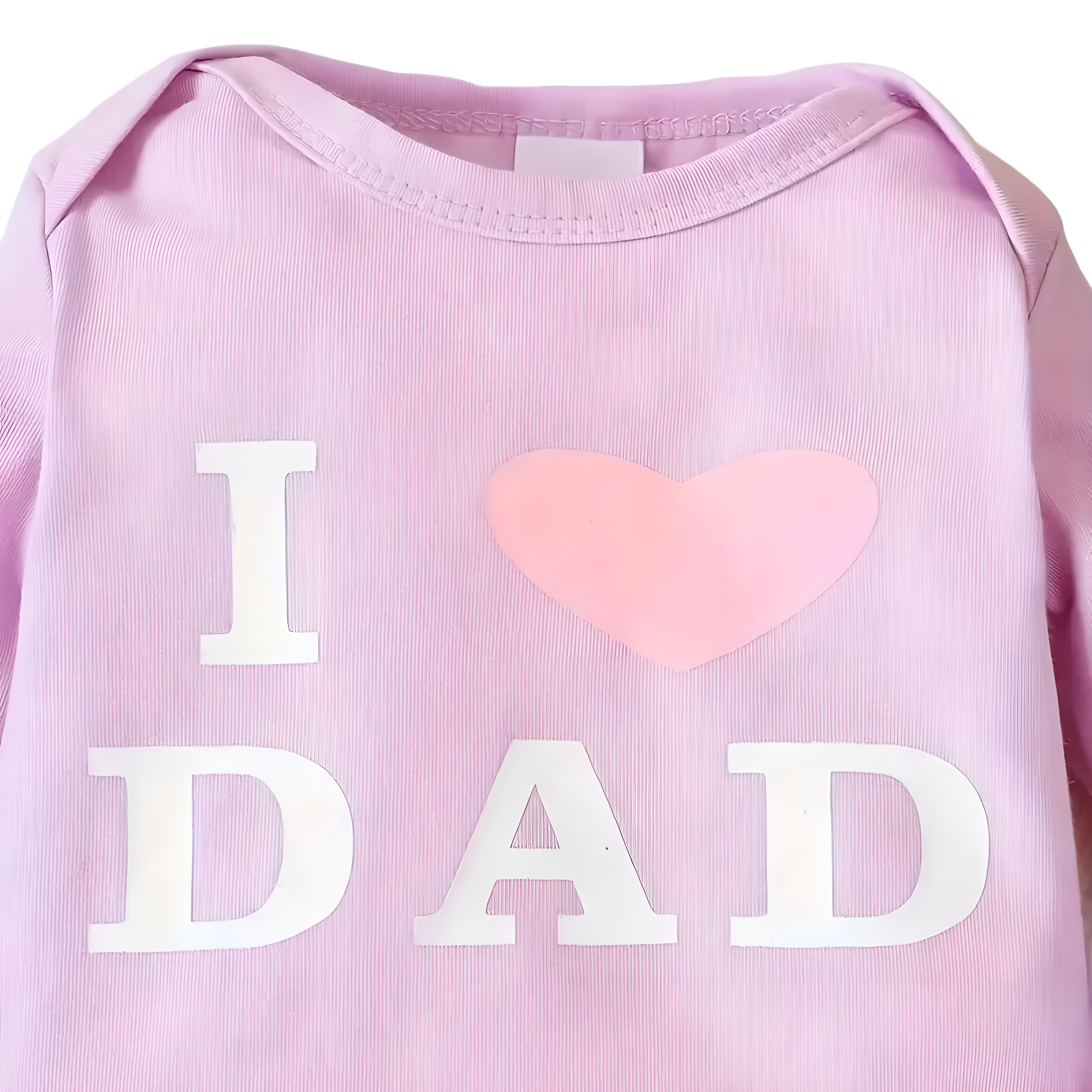 The bodysuit’s long sleeves provide mild warmth during cooler months, while the pants’ elastic waistband ensures a safe and comfortable fit. The Mom and Dad print bring cheerful expression and family spirit to the outfit, making it a meaningful wardrobe addition.