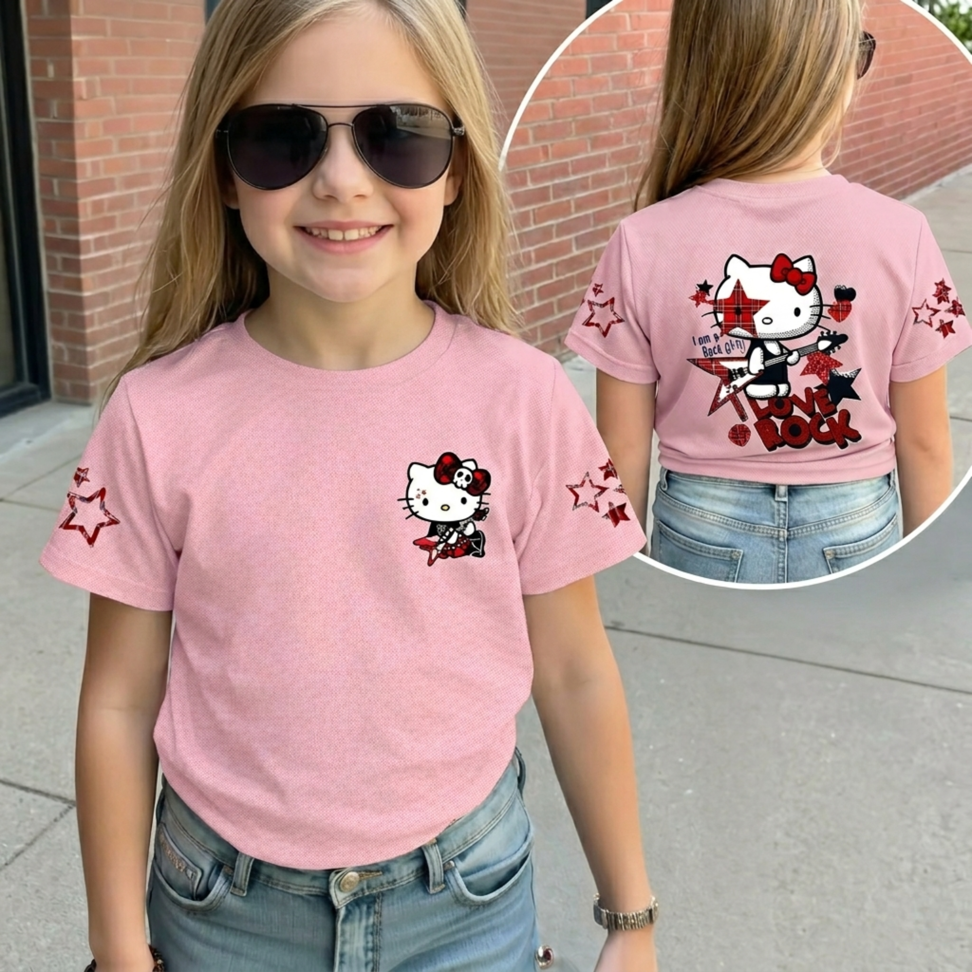 A comfortable and stylish tee designed for everyday wear, combining design with practicality. Short-Sleeved T-shirt for Girls With Hello Kitty Double-Sided Print is a lightweight and airy casual option designed for comfort and style. Featuring a vibrant double-sided cartoon print, it enhances everyday outfits with a fun look. The soft mesh fabric ensures easy wear, while construction supports long-term use. Ideal for daily activities and casual occasions, it offers a perfect balance of comfort and style.