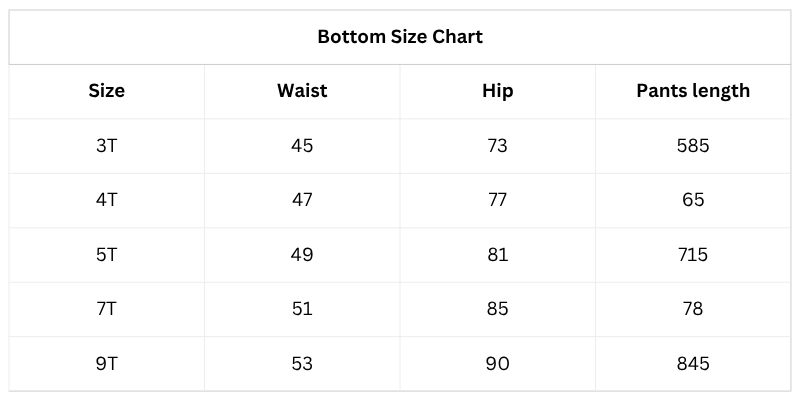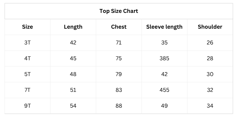 - Available Sizes: 3T,4T, 5T, 7T, 9T