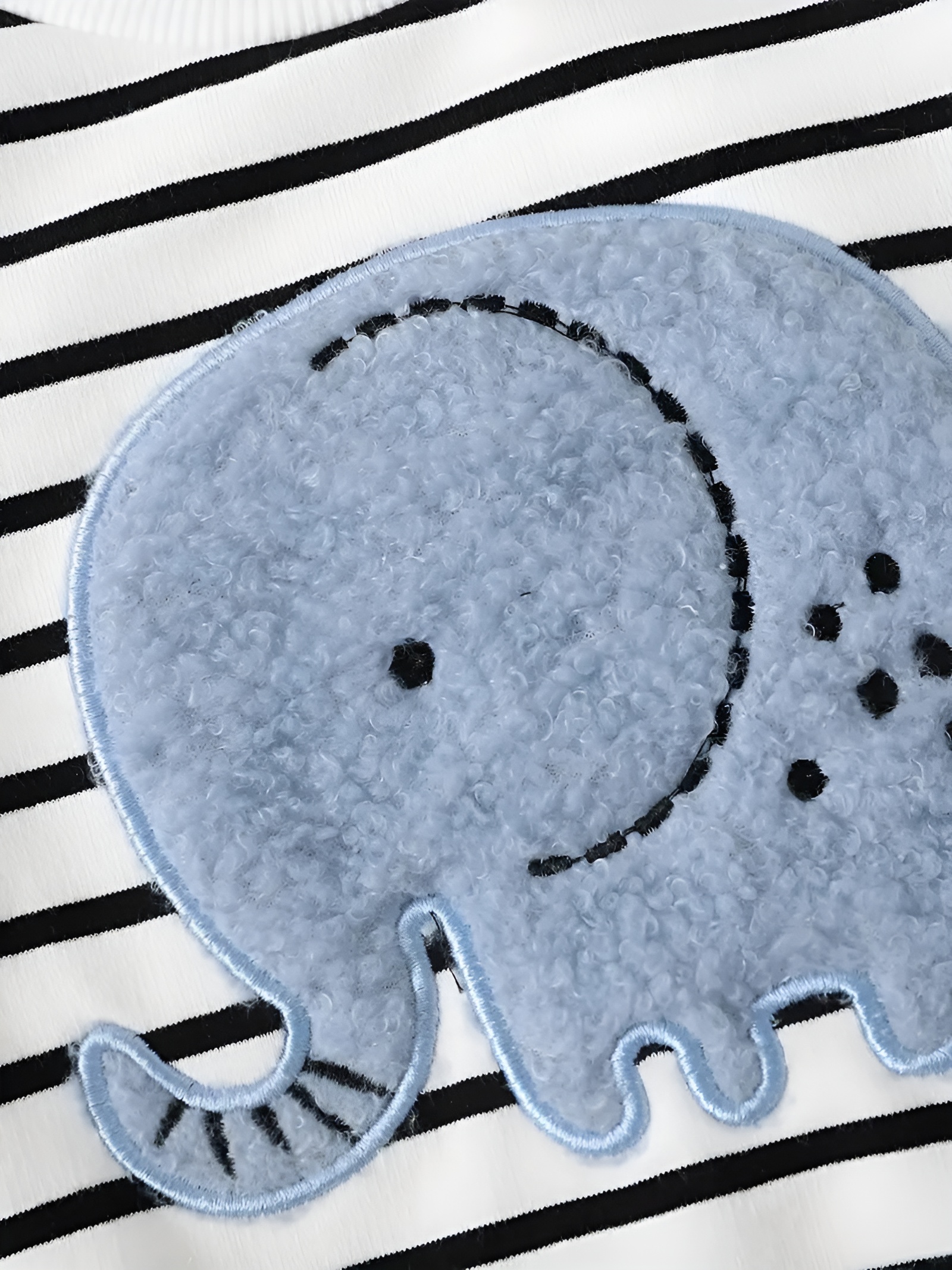 Why Choose This Striped Elephant Pattern Long Sleeve Top And Denim Trousers 2 Piece Set For Boys