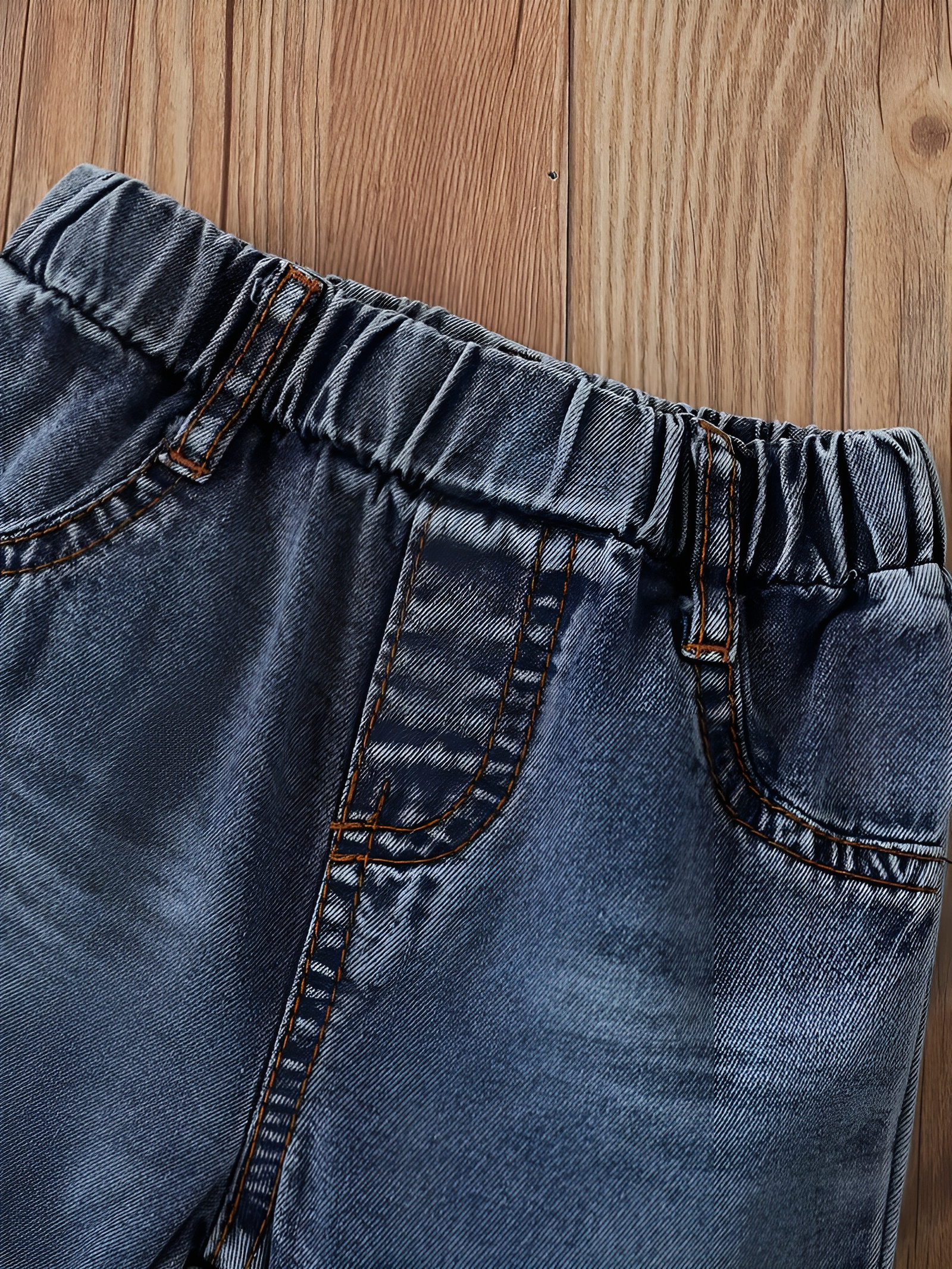 Crafted from good-quality cotton-blend fabric, the top is soft to the touch while allowing ease of movement. The matching denim trousers feature a slight stretch for added flexibility, ensuring a comfortable fit as your little one explores, plays, or enjoys family gatherings.
