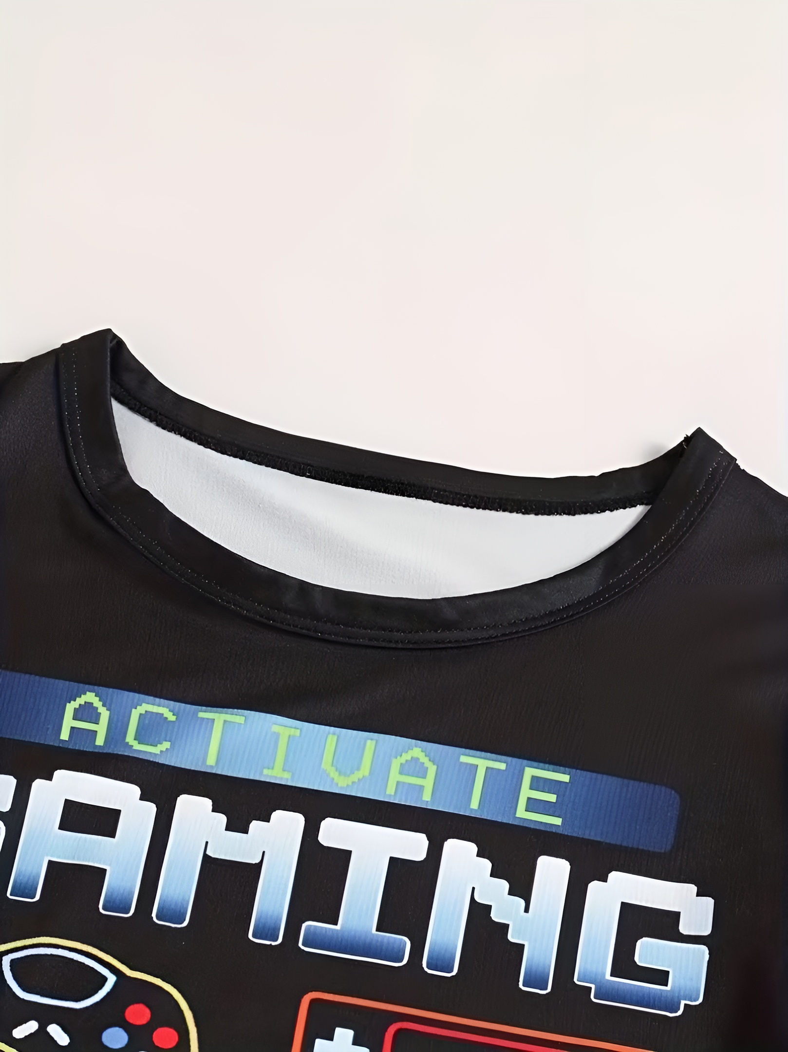Made with a polyester and spandex blend, this set maintains its shape and smoothness while being simple to care for. The vivid gaming print brings lively energy to evening wear or indoor comfort. Designed with practical features such as elastic waistbands, a round neckline, and fade-resistant fabric, it keeps wearers comfortable and confident in any setting.