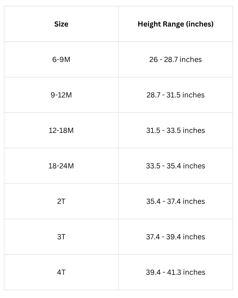 Size Chart (Inches):