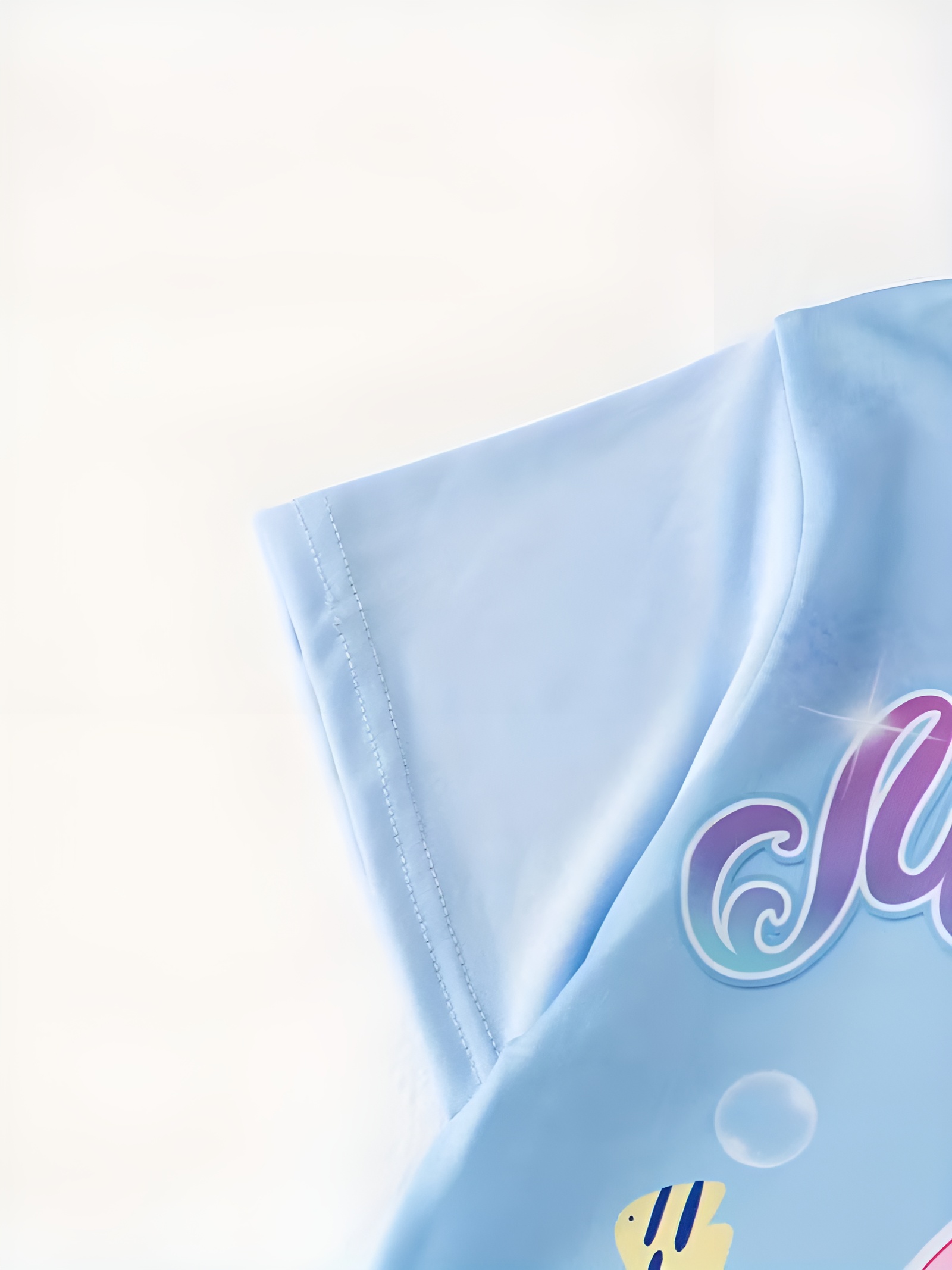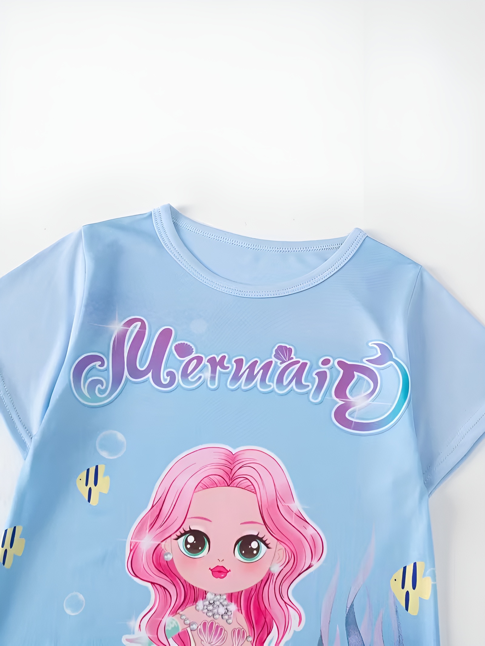 The Undersea Mermaid Print Short Sleeve Summer Dress offers a simple and pleasant sleepwear choice made for comfort and style. Designed with care for children, this night dress features an ocean-inspired design that brings imagination into daily wear. It is made from a smooth fabric blend that feels light and easy to wear through warmer seasons. With its short sleeves and mid-length cut, it offers a gentle fit for day and night use.