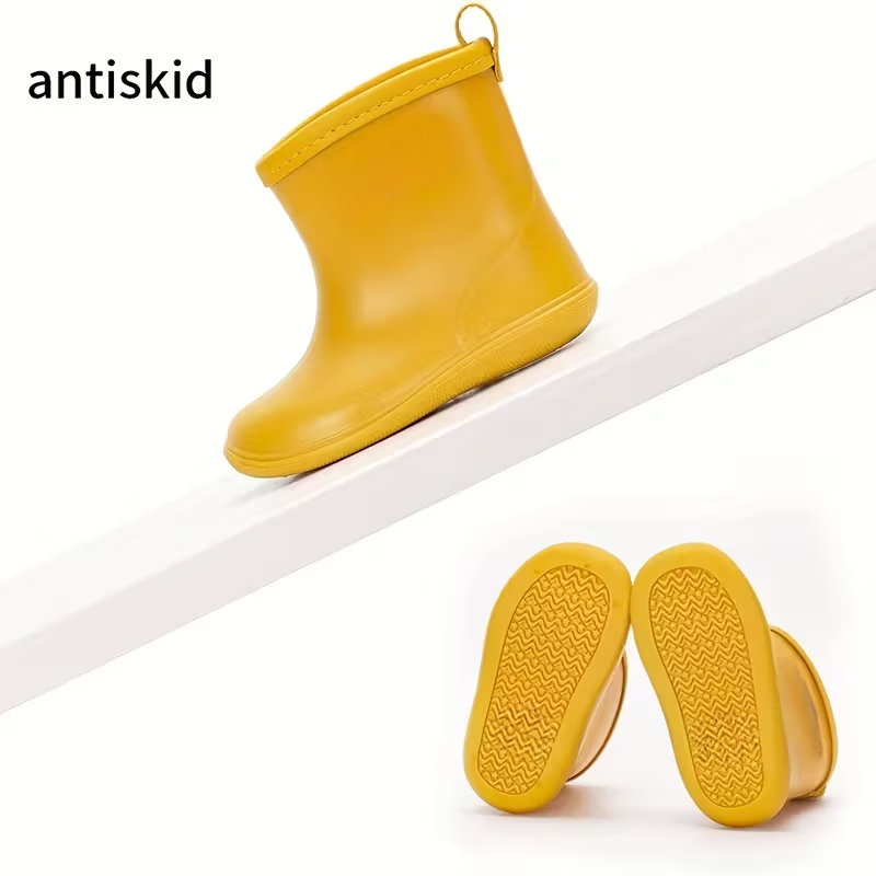 Waterproof toddler rain boots include a non-slip sole for outdoor stability. The sole pattern supports traction on wet ground. This helps toddlers move confidently during rainy weather.